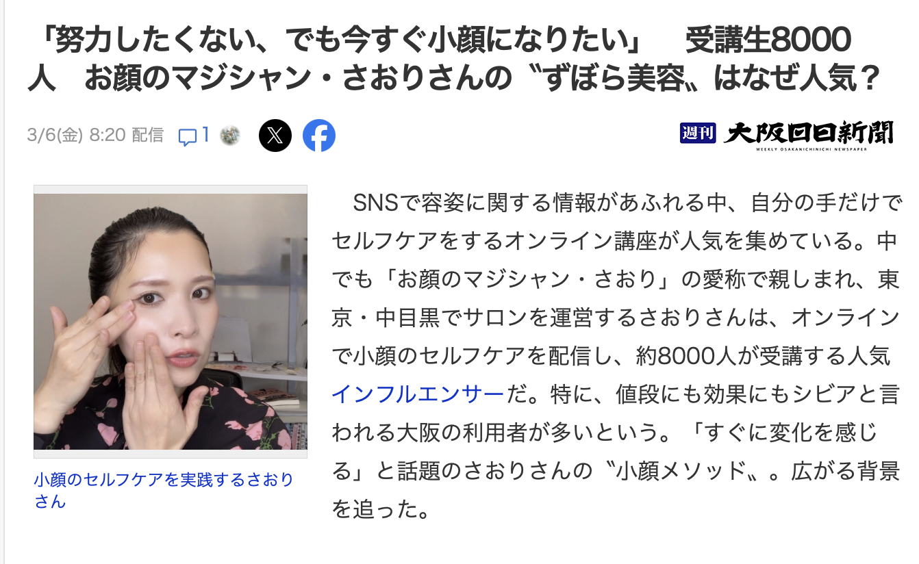 株式会社小顔 代表 吉村さおり(お顔のマジシャンさおり)が